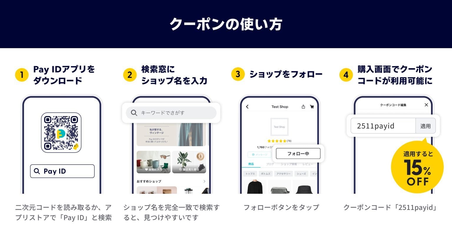 必ずPayIDアプリからのご購入時にクーポンコード【2511payid】を入力してください。