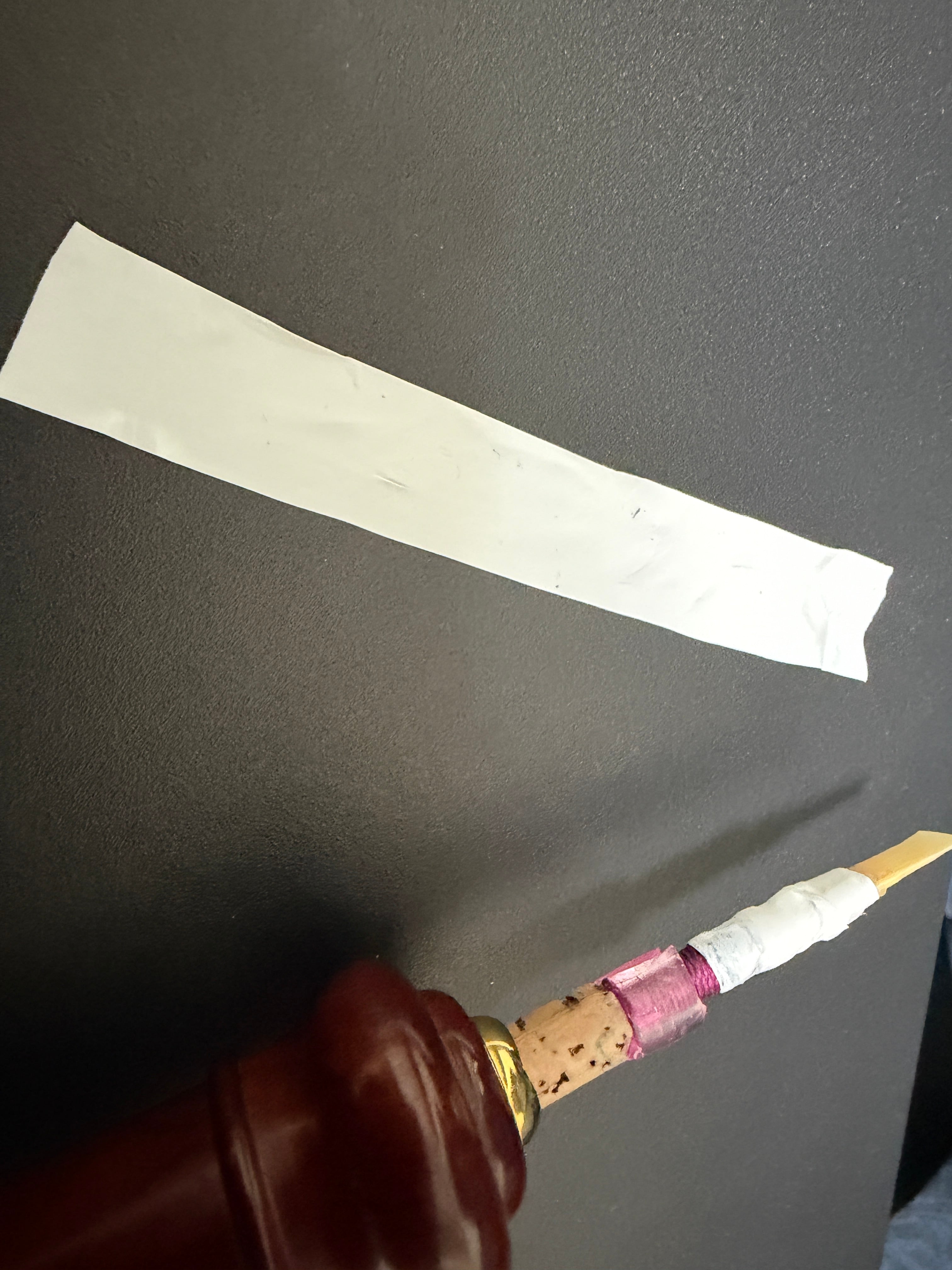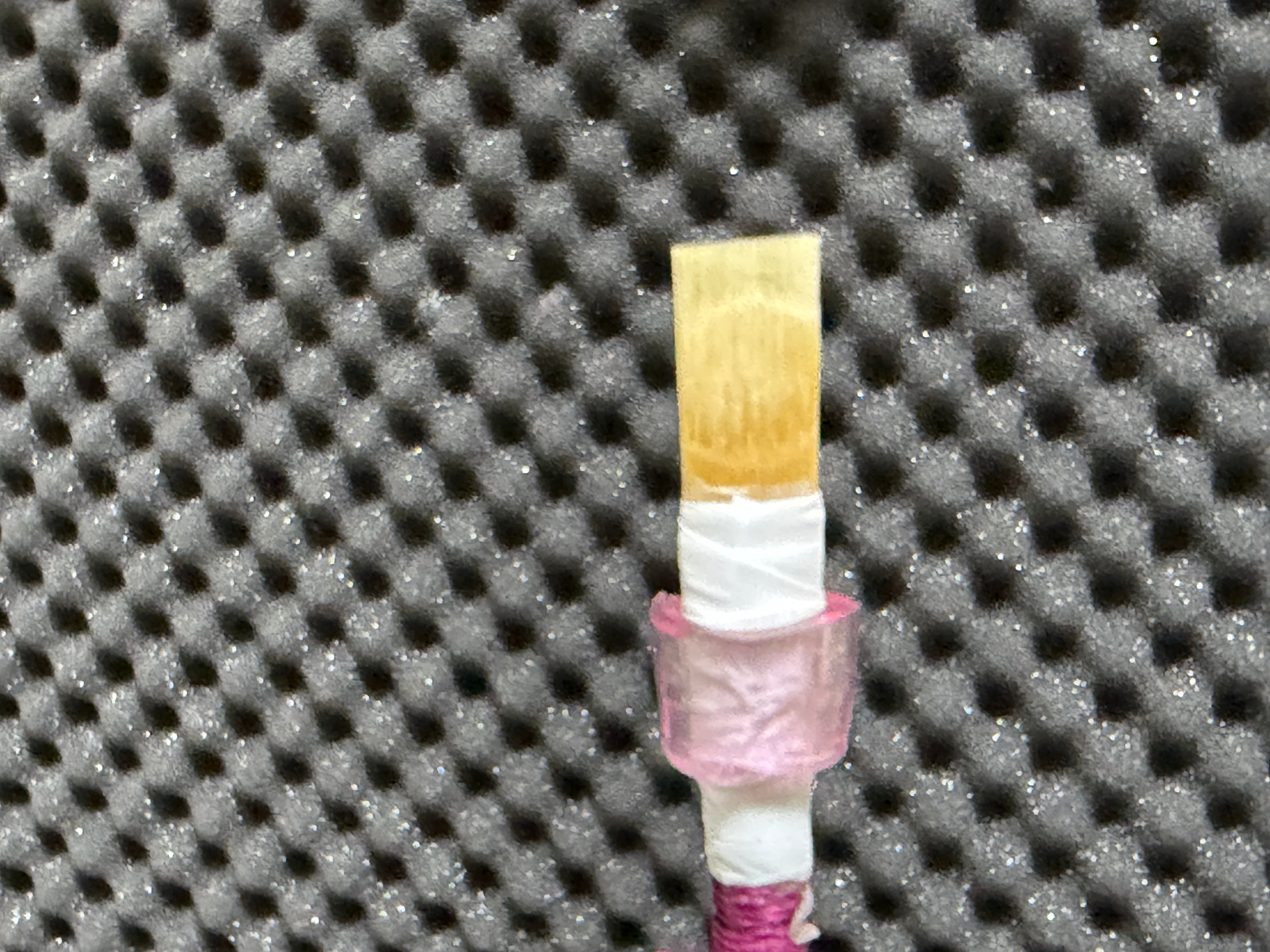 私製作リードには予め白テープを巻いていますが、その上から更に追加で巻くと響きを円やかにできます。見た目は悪くなりますが。
