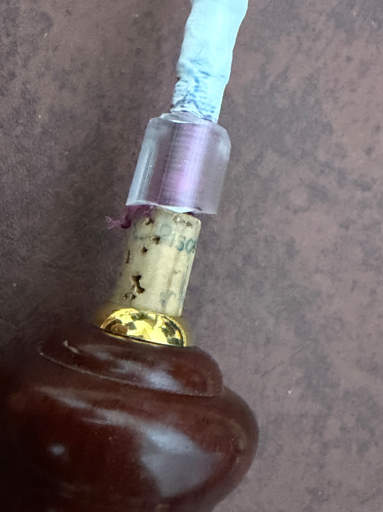 これは簡単に取り外しや装着が出来ます。装着する場所によって響きは変わります。私的にはなるべく下、写真1から3枚目の場所が一番効果的で、響きが円やかになります。少し優しい響きになります。オーケストラなどで2番奏者に向いています。1番オーボエを吹く時は樹脂チューブを外し、2番やシビアな小さな音PP等の時は装着すると良いと思います。