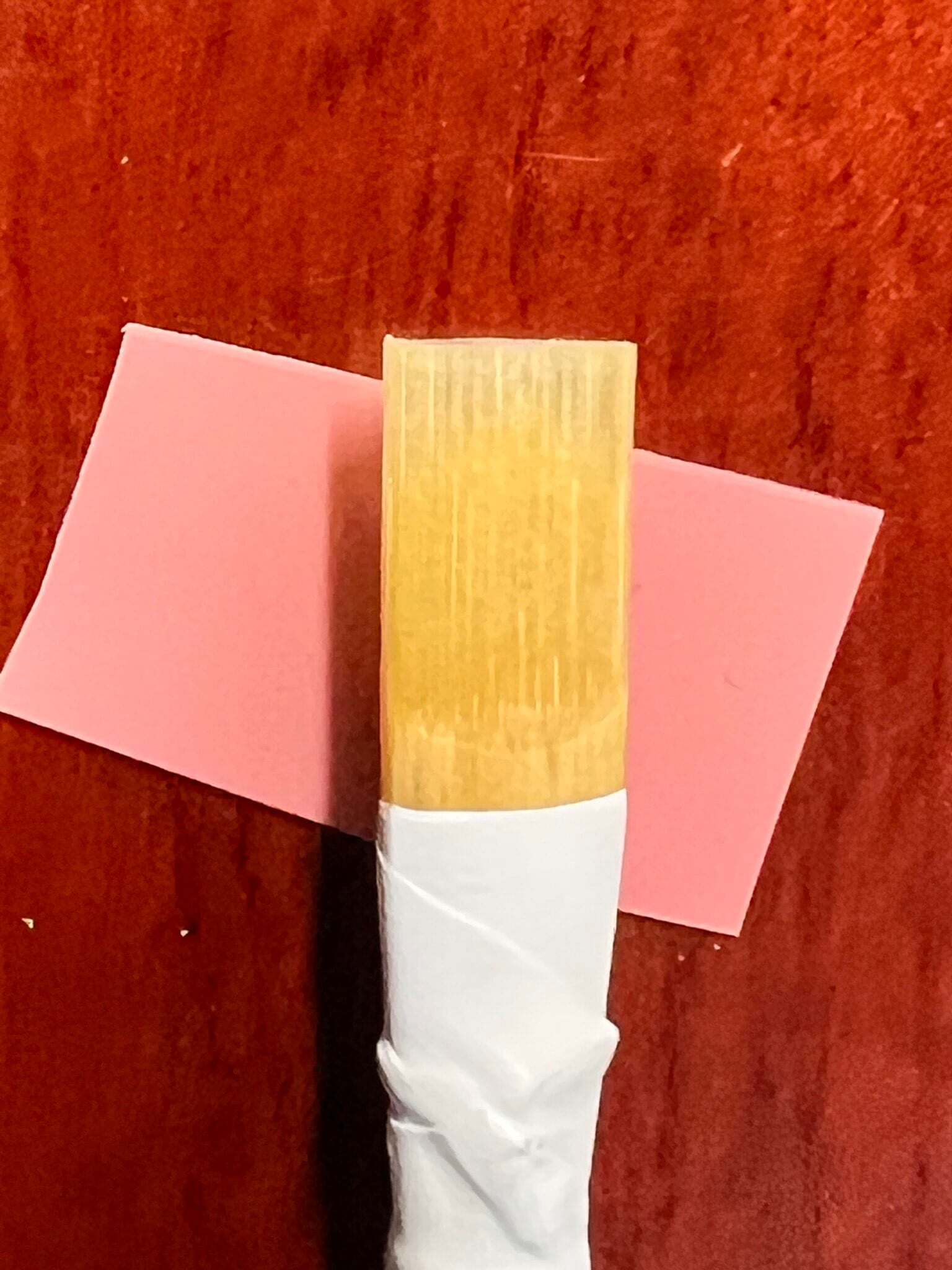 必ず使っていない古いリードで実験、練習をしてからにしてください。リード先端部1ミリ位は非常に薄い為、この部位は絶対に擦らないでください。音が出なくなります。
